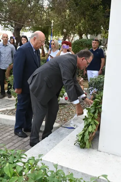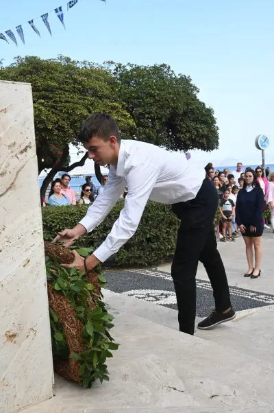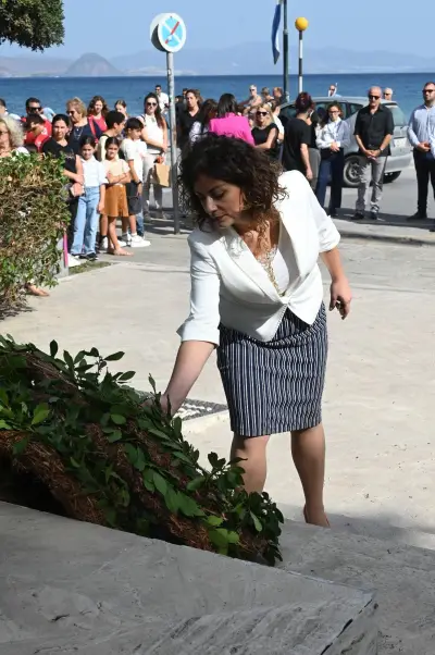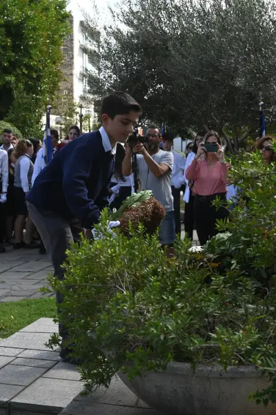 Ακολούθησε προσκύνημα αντιπροσωπειών μαθητών στο Μνημείο των Αρχιερέων και κατάθεση στεφάνων, ενώ αμέσως μετά πραγματοποιήθηκε κατάθεση στεφάνων στο Ηρώο Ριμινιτών Ιερολοχιτών Εθελοντών Κώων Παλαιών Πολεμιστών από εκπρόσωπο της Ταξιαρχίας, του Δήμου Κω, του Επαρχείου Κω και εκπρόσωπο των Εθελοντών Κώων Παλαιών Πολεμιστών.