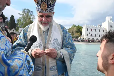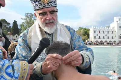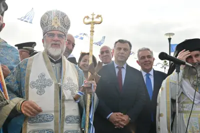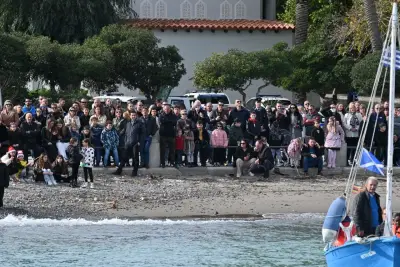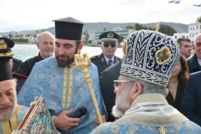 Οι Αρχές του τόπου, εκπρόσωποι Φορέων αλλά και αρκετοί συμπολίτες μας, έδωσαν και φέτος το ''παρών'' στον Αγιασμό των Υδάτων και την κατάδυση του Τίμιου Σταυρού, στη θαλάσσια περιοχή μπροστά από την προβλήτα στο Διοικητήριο.