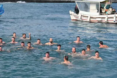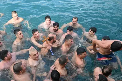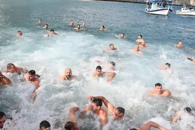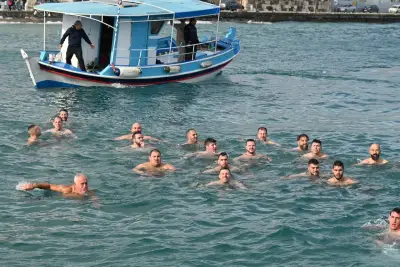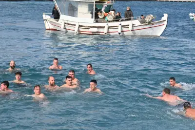 Φέτος, 47 άτομα βούτηξαν με τον Γιάννη Κουρζή να πιάνει τον Σταυρό για 1η φορά.