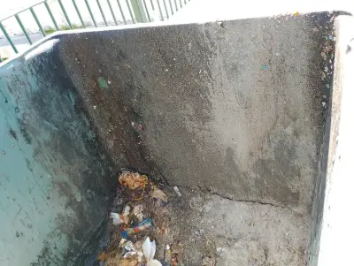 Κάδοι σοβατισμένοι με βρομιές έξω από την παιδική χαρά στην πλατεία του χωριού, έχουν αρκετά χρόνια να πλυθούν, σκουπίδια παντού, έξω και μέσα στο χωριό.
