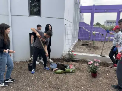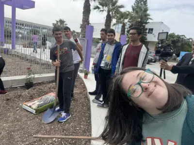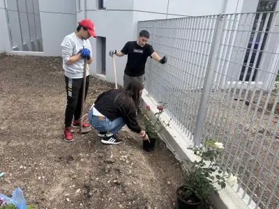 Οι μαθητές αρκετά χαρούμενοι και ενθουσιασμένοι, έσκαψαν και φύτεψαν τριανταφυλλιές, με σκοπό την ανάδειξη των κοινωνικών ευαισθησιών και της αγάπης για το περιβάλλον, στέλνοντας το μήνυμα “Φυτεύουμε δέντρα - Σεβόμαστε τη Γη”.