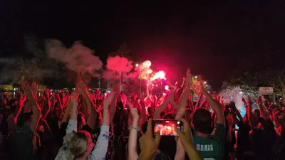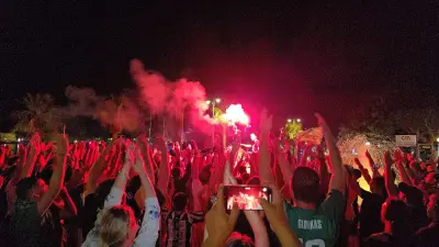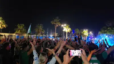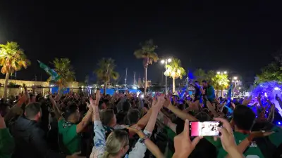 Έξαλλοι πανηγυρισμοί για τη μεγάλη επιτυχία της ελληνικής ομάδας και στην Κω, με τους φίλους του Παναθηναϊκού να συγκεντρώνονται στα δελφίνια, γλεντώντας με την καρδιά τους την κατάκτηση της κορυφής της Ευρώπης στο μπάσκετ.