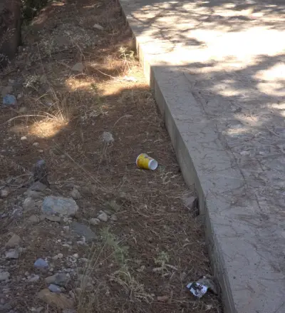 Σε έναν χώρο μοναδικού κάλους, που θα έπρεπε να το έχουμε στολίδι, αντικρίζουμε χαρτιά υγείας, ποτήρια καφέ, πακέτα τσιγάρων και κάθε λογής σκουπίδια, τα οποία βρίσκονται πεταμένα στον χώρο, ενώ σε απόσταση μόλις 20 μέτρων υπάρχει κάδος σκουπιδιών.