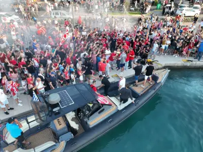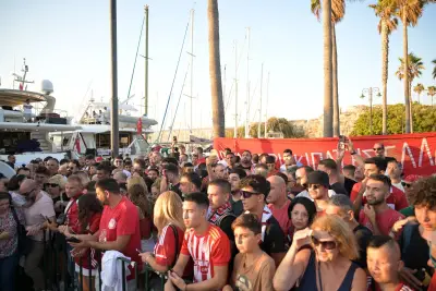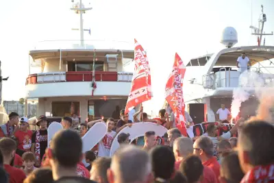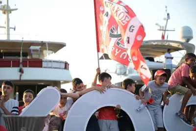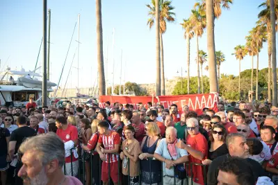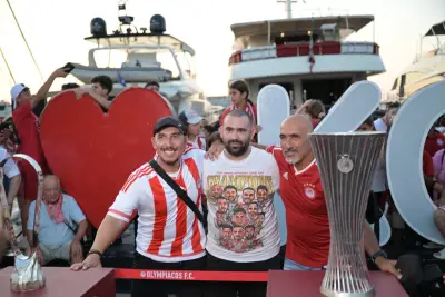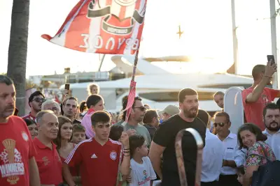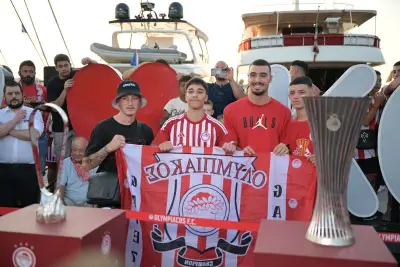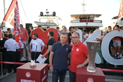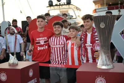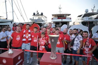 Σήμερα Παρασκευή 2 Αυγούστου ήταν η σειρα της Κω να υποδεχθεί τα δύο ευρωπαικά τρόπαια, με τον κόσμο του Ολυμπιακού να συρέει στο λιμάνι της Κω.