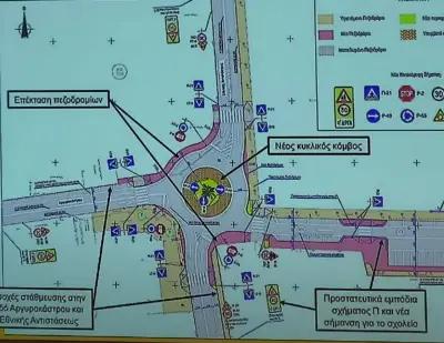 ΑΠΟΜΑΚΡΥΝΣΗ ΤΩΝ ΦΩΤΕΙΝΩΝ ΣΗΜΑΤΟΔΟΤΩΝ ΣΤΗΝ EUROBANK ΣΤΗΝ ΕΙΣΟΔΟ ΤΗΣ ΠΟΛΗΣ ΚΑΙ ΔΗΜΙΟΥΡΓΙΑ ΚΥΚΛΙΚΟΥ ΚΟΜΒΟΥ. ΔΕΙΤΕ ΠΑΡΑΚΑΤΩ ΤΟ ΣΧΕΤΙΚΟ ΣΧΕΔΙΑΓΡΑΜΜΑ.