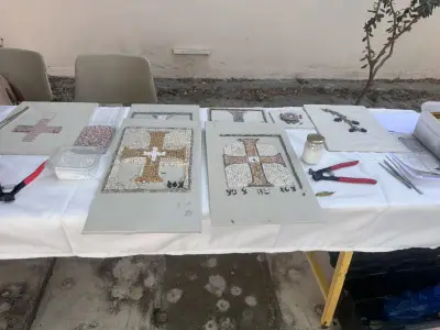 Ο υπεύθυνος του Εργαστηρίου Ψηφιδωτών της Ιεράς Μητρόπολης Κώου και Νισύρου κ. Δαυίδ Χατζηδαυίδ, μίλησε για την τέχνη του ψηφιδωτού, η οποία τα τελευταία χρόνια ανθίζει και πάλι στο νησί μας, ενώ μέσω βίντεο παρουσίασε τη διαδικασία επεξεργασίας και κοπής των μαρμάρων πριν χρησιμοποιηθούν για τη δημιουργία των ψηφιδωτών, εξηγώντας όλα τα στάδια που απαιτούνται!