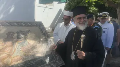 Τέλος, χαιρετισμό απηύθυνε ο Σεβασμιώτατος Μητροπολίτης Κώου και Νισύρου κ.κ. Ναθαναήλ, ο οποίος είναι στυλοβάτης όλης αυτής της προσπάθειας, για την ανάδειξη της τέχνης του ψηφιδωτού στο νησί μας.