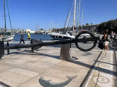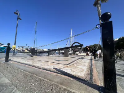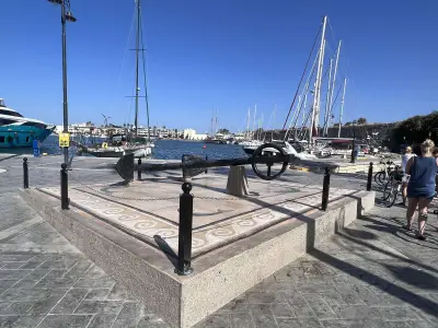 Πάνω σε αυτό το ψηφιδωτό τοποθετήθηκε μια άγκυρα, τύπου Βρετανικού Ναυαρχείου, άστυπος, που την χρησιμοποιούσαν κυρίως στο τέλος της εποχής τους όλα τα μεγάλα ιστιοφόρα και τα πρώτα ατμοκίνητα πλοία. Η συγκεκριμένη πιθανόν εγκαταλείφθηκε στον βυθό του λιμανιού της Κω, για άγνωστους λόγους και αφού χρησιμοποιήθηκε για αρκετά χρόνια ως μόνιμο αγκυροβόλιο από τα ορμούντα στο λιμάνι πλοία, τελικά ανελκύστηκε και κοσμεί το παραλιακό μέτωπο του λιμένα Μανδρακίου.