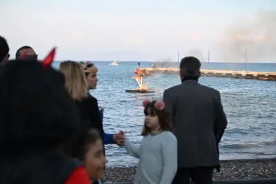 Η καρναβαλική πομπή ξεκίνησε δυναμικά, κατευθυνόμενη αρχικά προς τη λεωφόρο των Φοινίκων, όπου μπροστά στην πολεμική σκάλα πραγματοποιήθηκε το κάψιμο του βασιλιά Καρνάβαλου. Στη συνέχεια, η πομπή έφτασε στην Πλατεία Ελευθερίας, όπου η ατμόσφαιρα απογειώθηκε! Ο Τζόκερ με την εκρηκτική του παρουσία ξεσήκωσε μικρούς και μεγάλους, ενώ οι μουσικές επιλογές των DJs διατήρησαν αμείωτο το κέφι.