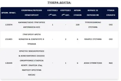 Μάλιστα, «τρία (3) τυχερά δελτία βρέθηκαν στην δεύτερη κατηγορία (5) το οποίο κερδίζει το ποσό των €100.000,00».