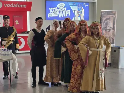 πρώτους τουρίστες οι οποίοι ταξίδευσαν προς το νησί μας από τo Λονδίνο (Διεθνές Αεροδρόμιο Στάντστεντ).