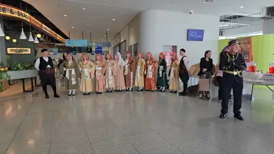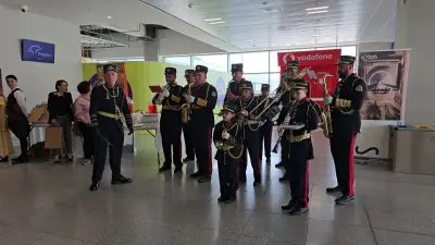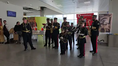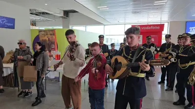 O αρχιμουσικός της φιλαρμονικής του Δήμου Κω Νίκος Γκαναβούρας μαζί με μαθητές του έντυσαν μουσικά την εκδήλωση υποδοχής, ενώ παράλληλα παραδοσιακούς χορούς χόρεψαν