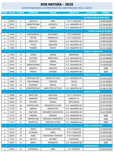 Η Ακαδημία Κω συγχαίρει και ευχαριστεί όλους τους αθλητές που συμμετείχαν στον διασυλλογικό αγώνα θεσμό για το νησί μας KOS NATURA και νιώθει υπερήφανη που για μία ακόμη χρονιά διοργανώνει στο νησί μας έναν αγώνα που κάθε χρόνο είναι και εντυπωσιακότερος, με την παρουσία ομάδων και εκτός της Δωδεκανήσου.