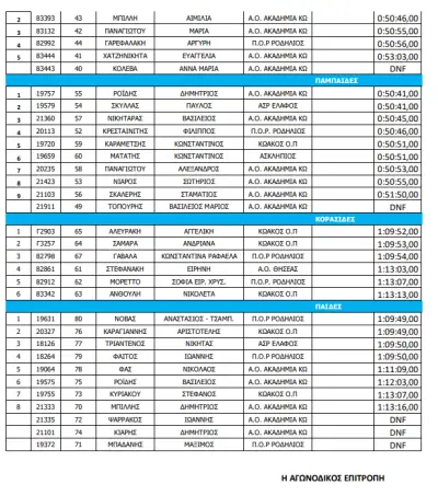Ιδιαίτερα συγχαρητήρια αξίζουν και στο τμήμα Τροχαίας Κω για τη μέριμνα στην ασφάλεια του αγώνα όπως και στην Κεντρική Επιτροπή Κριτών, που για ακόμα μία φορά όρισε τρεις από τους ικανότερους κριτές της δύναμής της, με αποτέλεσμα την άριστη διεξαγωγή του αγώνα.