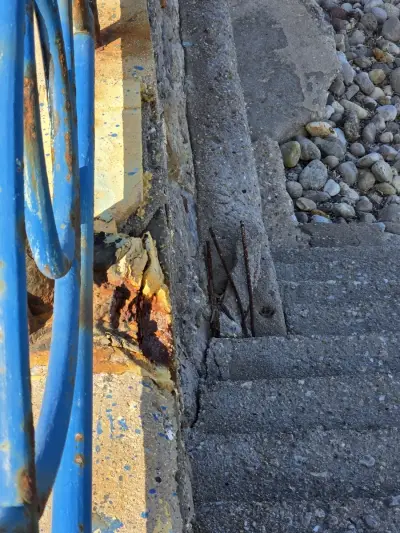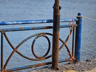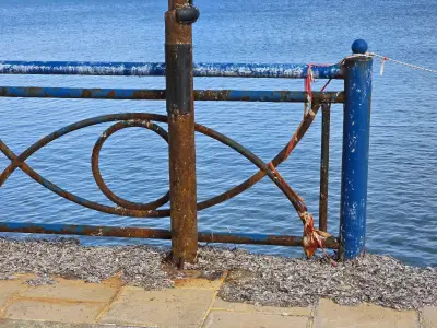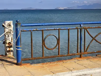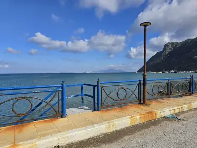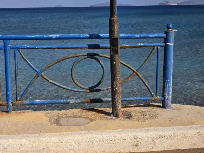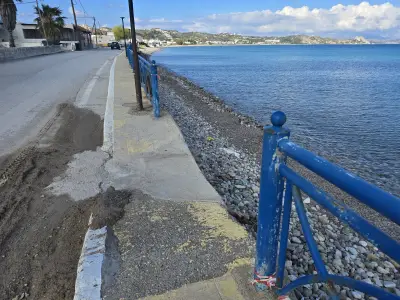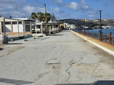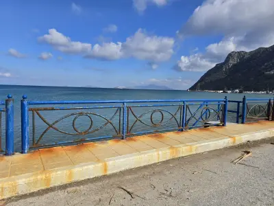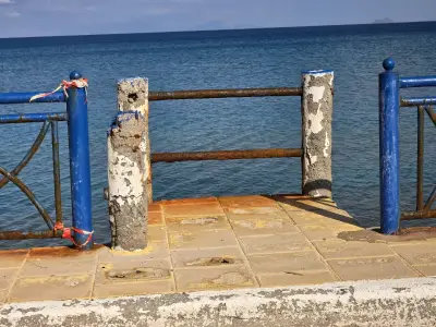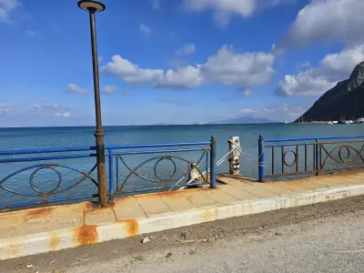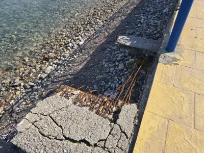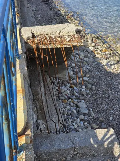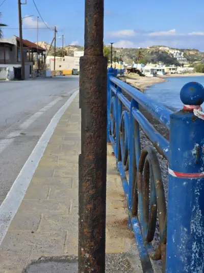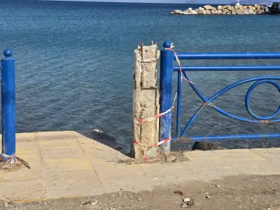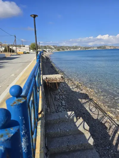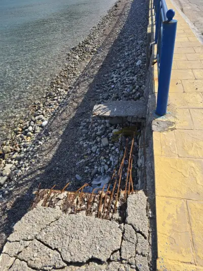 Σκουριασμένα και ετοιμόρροπα κάγκελα, φθαρμένα φωτιστικά, σίδερα που προεξέχουν από τα σκαλοπάτια που οδηγούν στη θάλασσα, καθώς και λακκούβες που καθιστούν επικίνδυνη τη διέλευση οχημάτων και πεζών, συνθέτουν μια εικόνα ντροπής.
