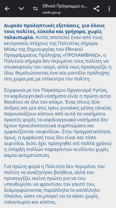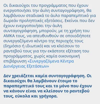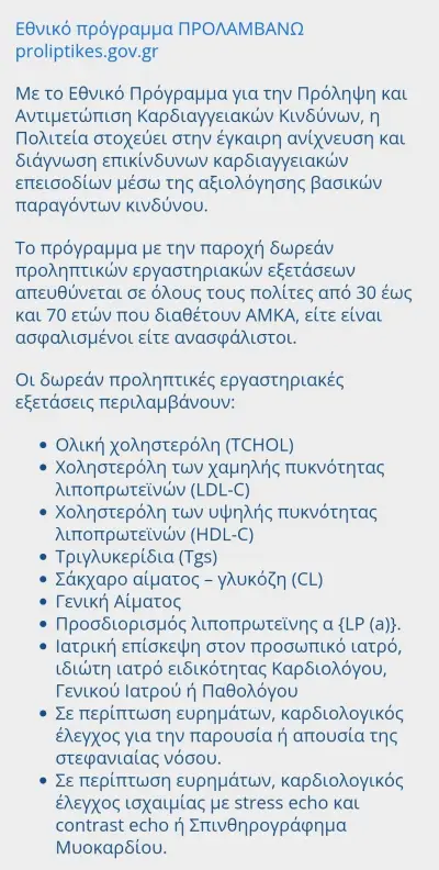 Στις 30/03/2025 έλαβα ένα υπέροχο μήνυμα μέσω ηλεκτρονικού ταχυδρομείου που με ενημέρωνε πως στα πλαίσια του προγράμματος ΠΡΟΛΗΨΗΣ ΚΑΡΔΙΑΓΓΕΙΑΚΩΝ ΠΑΘΗΣΕΩΝ, έχει εκδοθεί αυτόματα ΠΑΡΑΠΕΜΠΤΙΚΟ για δωρεάν προληπτικές αιματολογικές εξετάσεις ΛΙΠΙΔΑΙΜΙΚΟΥ ΠΡΟΦΙΛ.