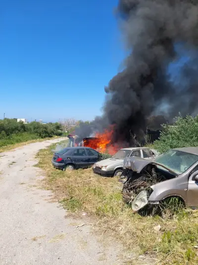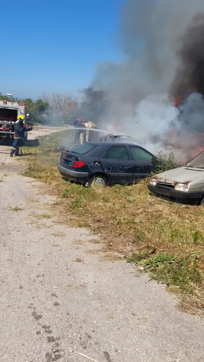 Η φωτιά εκδηλώθηκε σε τέσσερα εγκαταλελειμμένα οχήματα που βρίσκονταν στον χώρο, χωρίς πινακίδες κυκλοφορίας. Από την πυρκαγιά καταστράφηκαν ολοσχερώς τα τρία, ενώ το τέταρτο υπέστη σοβαρές ζημιές, περίπου κατά το ήμισυ του αμαξώματός του.