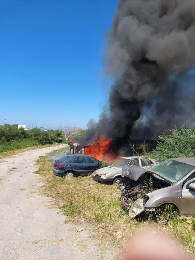 Καταστράφηκαν τέσσερα εγκαταλελειμμένα οχήματα από πυρκαγιά στην Κω.
