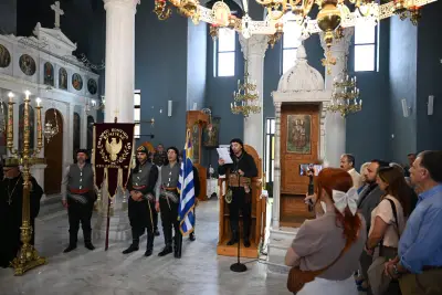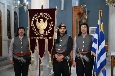 Τον πανηγυρικό εκφώνησε ο γραμματέας του Συλλόγου Ποντίων Κω «Ο ΞΕΝΙΤΕΑΣ» κ. κ. Θοδωρής Καρακοζίδης.