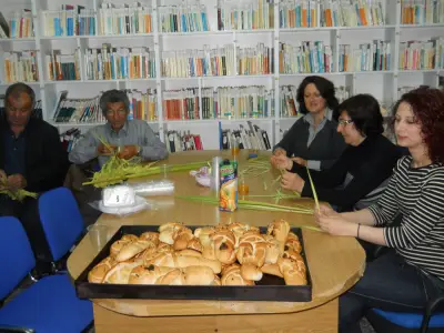 Από την Τετάρτη ξεκινήσαμε εργαστήρια, με τη βοήθεια πολλών γονέων, παππούδων και γιαγιάδων αλλά και της εκκλησιαστικής επιτροπής για να φτιάξουμε βαγιές που στολίστηκαν με σταυρουδάκια και βιολέτες για το Λάζαρο. Όλα τα παιδιά παρακολουθήσαμε κατά τάξη την τέχνη αυτή που δεν είναι γνωστή πια σε πολλούς.