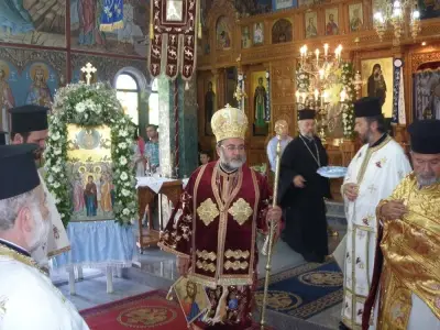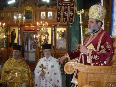 Την κυριώνυμο ημέρα τελέστηκε πανηγυρική αρχιερατική θεία λειτουργία από το Σεβασμιώτατο Μητροπολίτη μας. Κατά τη διάρκειά της το θείο λόγο κήρυξε ο Διευθυντής των Στρατιωτικών Ιερέων του Γενικού Επιτελείου Στρατού Συνταγματάρχης Πρωτοπρεσβύτερος Πατήρ Νικήτας Βελεγράκης, ο οποίος βρέθηκε στο νησί επισκεπτόμενος τις στρατιωτικές Μονάδες της Κω για να ενθαρρύνει τα στελέχη και το προσωπικό του οικείου Σχηματισμού της «80 ΑΔΤΕ», αλλά και να συνεορτάσει μαζί μας την εορτή της Θειας Αναλήψεως.