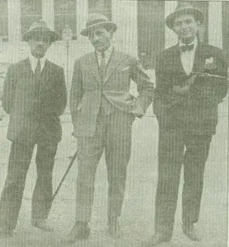 Ο Σταμάτης Μανούσης το 1922, φοιτητής στο Πανεπιστήμιο Αθηνών (δεξιά) με τον Χριστόφορο Ανδριωτάκη και τον τότε Πρόεδρο της Γενικής Ένωσης Κώων..