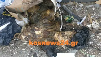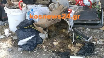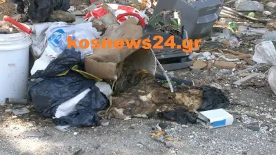 Στο σημείο πήγε συντάκτης του kosnews24.gr και αντίκρισε μια αποκρουστική εικόνα,εντόσθια ζώων πεταμένα στο δρόμο (αφού οι γάτες τα είχαν τραβήξει),μύγες παντού και μια ατμόσφαιρα τόσο αποπνικτική που δεν μπορούσες να πλησιάσεις στα 3 μέτρα.
