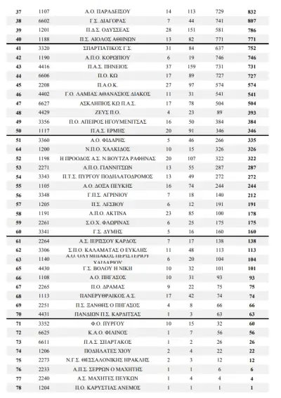 Μία βαθμολογία που αντανακλά τους κόπους και την προσπάθεια που καταβάλλουν αθλητές και σωματεία από τις αρχές του χρόνου, συμμετέχοντας σε αγώνες τοπικού και εθνικού χαρακτήρα.
