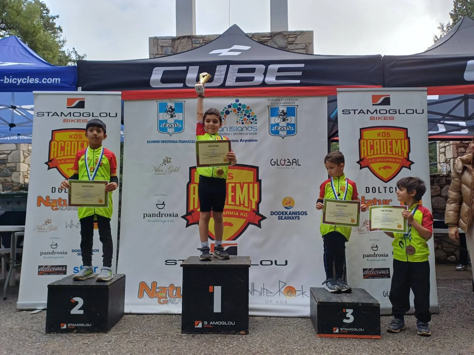 Από τους αθλητές της Ακαδημίας Κω, την πρώτη ημέρα του αγώνα στην κατηγορία των «super μίνι αγοριών» (Κ9), ο Σταυράκης Ανδρέας τερμάτισε στην 1η θέση, ο Χανδράς Μανώλης, ο μικρότερος αθλητής που συμμετείχε στους αγώνες, στον 1ο του αγώνα, τερμάτισε στη 2η θέση, ο Παππούλης Ιωάννης ολοκλήρωσε τον αγώνα του στην 3η θέση και ο Καραγιάννης Χαράλαμπος, επίσης στον 1ο του αγώνα, τερμάτισε στην 4η θέση. Στην αντίστοιχη κατηγορία των κοριτσιών, μία ακόμα αθλήτρια που αγωνίστηκε για πρώτη φορά, η Χατζηγιακουμή Ιωάννα, ανεβαίνοντας στο 1ο σκαλί του βάθρου.