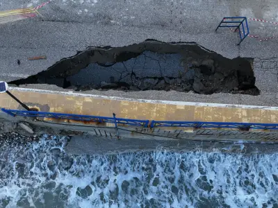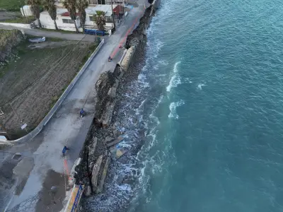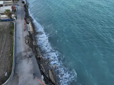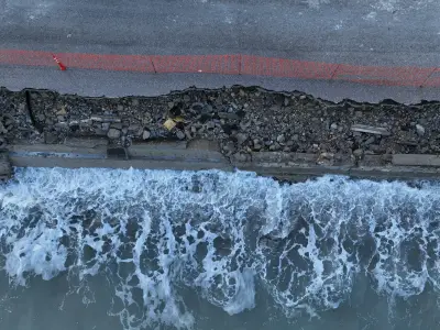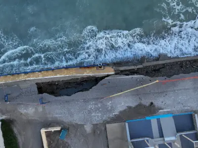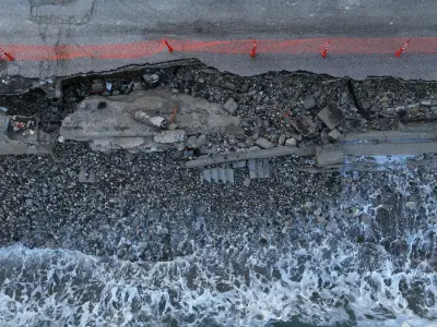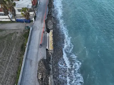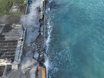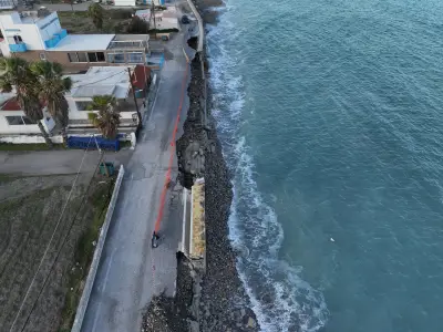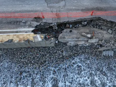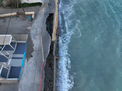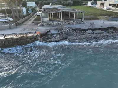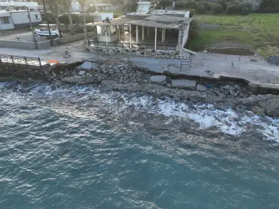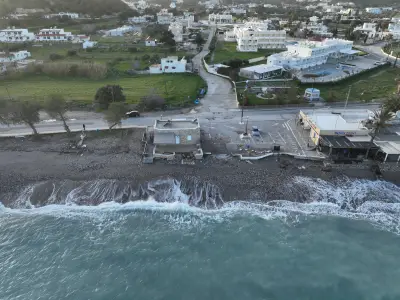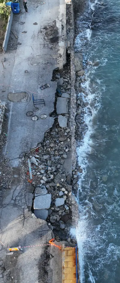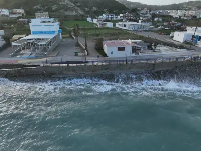 Οι αεροφωτογραφίες του kosnews24.gr αποτυπώνουν με τον πιο ξεκάθαρο τρόπο το μέγεθος της ζημιάς, καθώς σε αρκετά σημεία το οδόστρωμα έχει υποχωρήσει και τμήματα του δρόμου έχουν διαβρωθεί από τη θάλασσα.