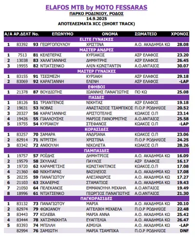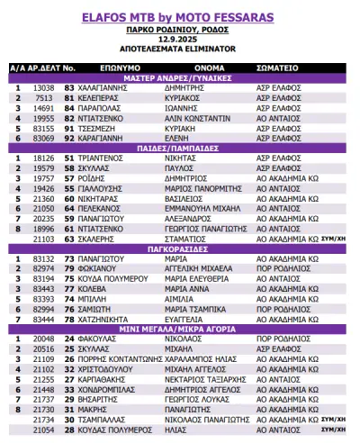 Οι 18 αθλητές και αθλήτριες της Ακαδημίας Κω, η οποία για πολλοστή φορά φέτος συγκρότησε τη μεγαλύτερη αποστολή αθλητών, αγωνίστηκαν στις 7 από τις 14 αγωνιστικές κατηγορίες που έλαβαν μέρος στο πρωτάθλημα, κατακτώντας 5 πρώτες θέσεις, με την αντίστοιχη ανάδειξη των πρωταθλητών - πρωταθλητριών Δωδεκανήσου για το 2025 στην ορεινή ποδηλασία.