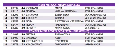 Σε ό,τι αφορά στο πρωτάθλημα Δωδεκανήσου, ανά κατηγορία, στην κατηγορία των «Μίνι Μικρών Αγοριών» (Κ11), ο Χριστοδούλου Μιχαήλ Άγγελος αναδείχθηκε πρωταθλητής Δωδεκανήσου με έναν πολύ καλό αγώνα, με τον Χονδρομπίλα Δημήτριο Άγγελο να τον ακολουθεί στη 2η θέση, με εξίσου υψηλή επίδοση στον αγώνα.
