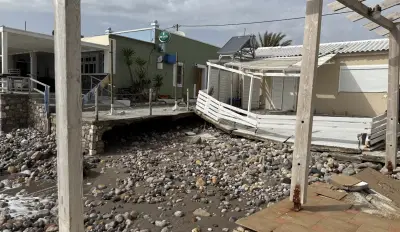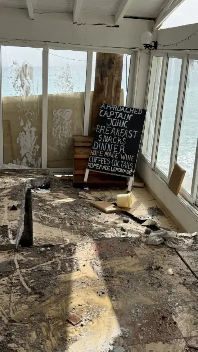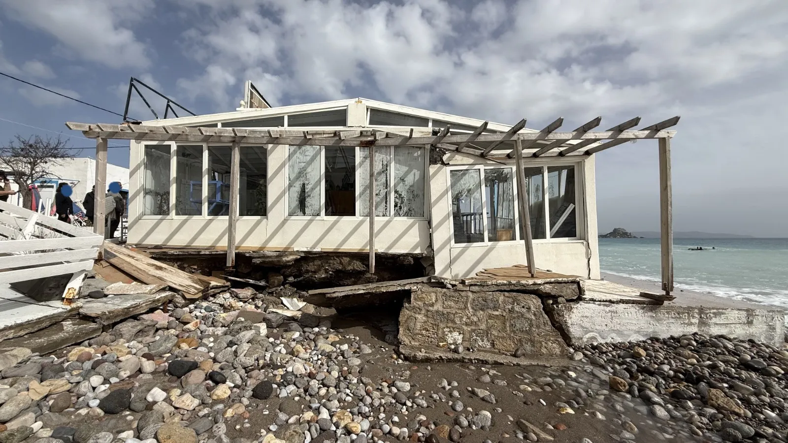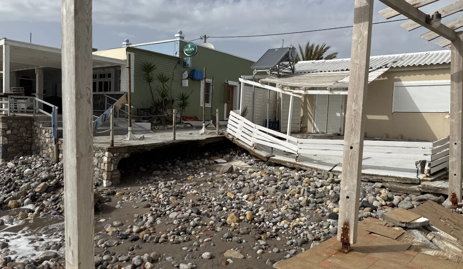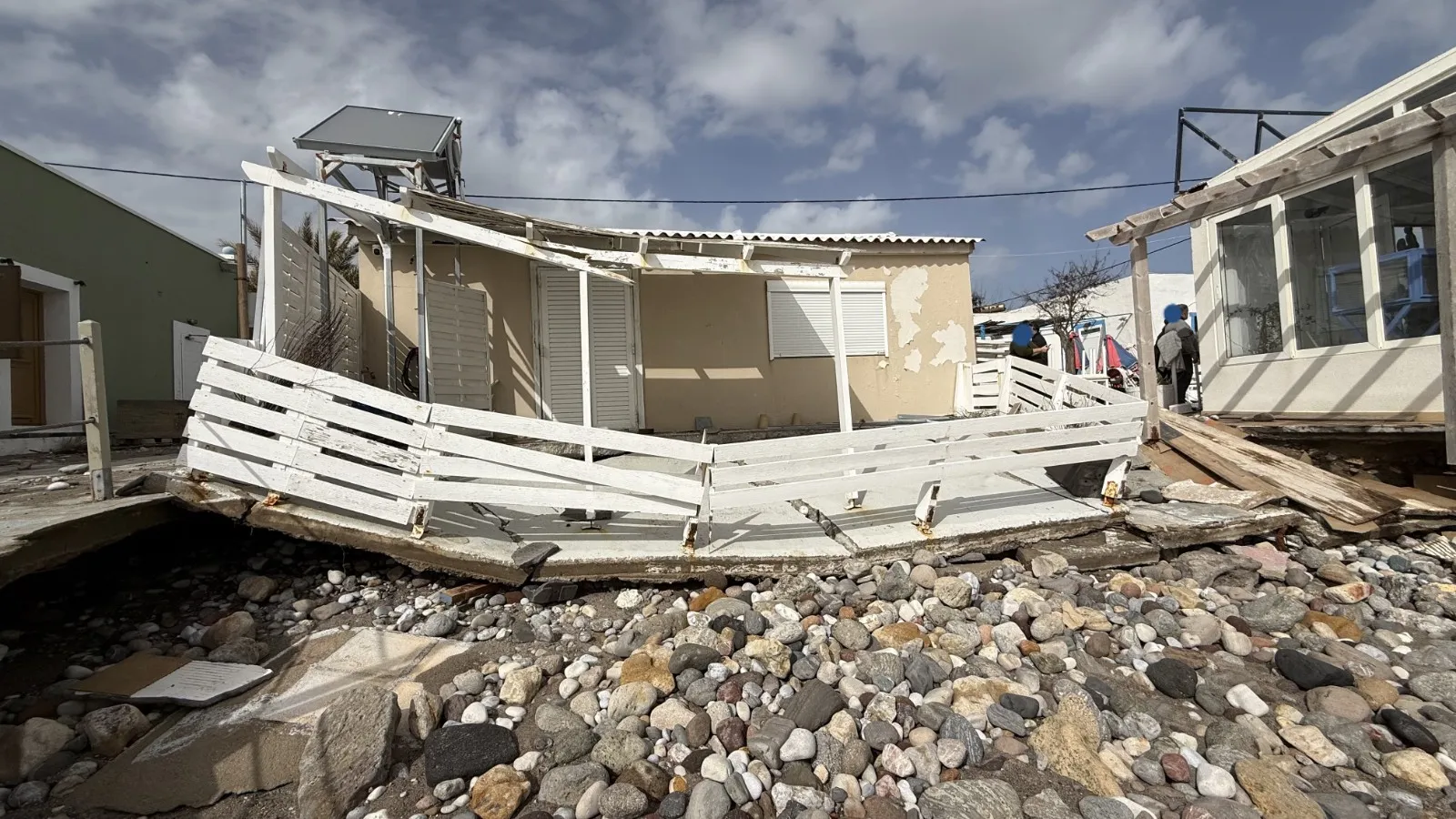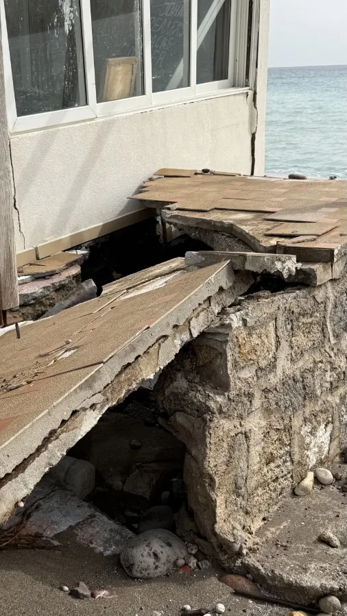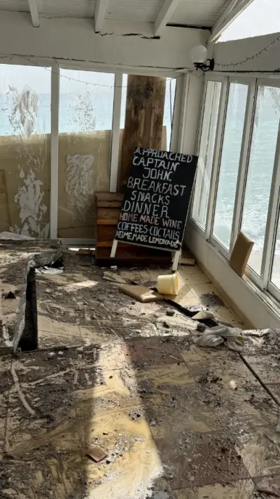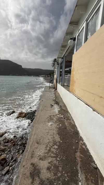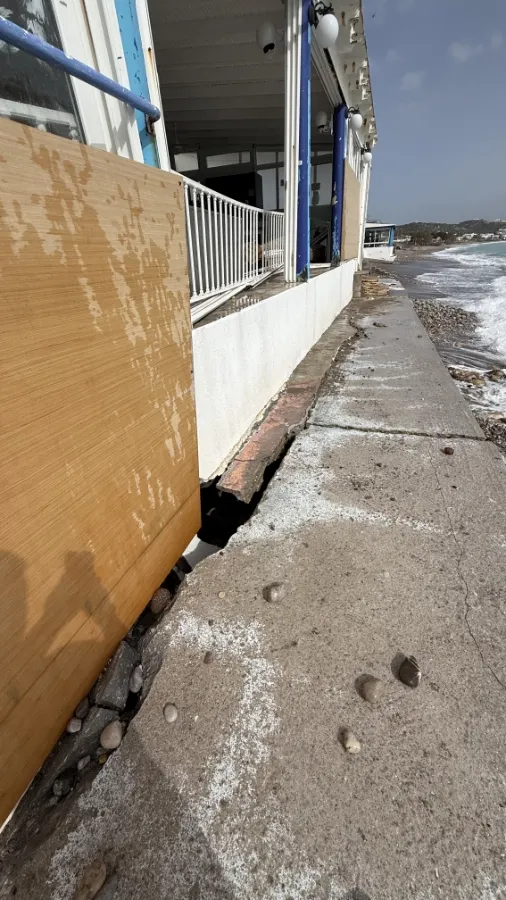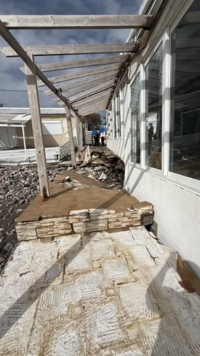 Τα ορμητικά κύματα προκάλεσαν εκτεταμένες καταστροφές στα κτίρια, με τους ιδιοκτήτες να βρίσκονται σε απόγνωση, καθώς οι ζημιές είναι μεγάλες και η ανησυχία εντείνεται λόγω των νέων ισχυρών ανέμων που αναμένονται.