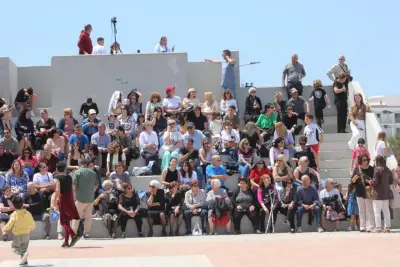 Ο ήλιος έλουζε το θεατράκι και το φως πλημμύριζε το λιμάνι. Από νωρίς το πρωί, γύρω στις 11, ήταν εκεί η Κυδωνιά Τρακόσσα, με τους 100 χορευτές της από την Καρδάμαινα, για να συντονίσει την εκδήλωση. Η Κυδωνιά, παιδί του του Λ.Ε. Κω από τα έξι, είναι βιωματική χοροδιδάσκαλος, με θητεία εννέα ετών στο Λ.Ε. Κω, δεκαοχτώ χρόνων στο Λ.Ε. Καρδάμαινας, και συνεργασία με τους Συλλόγους Κρητών «Ο Τάλως» και Πυλίου «Απελλής».