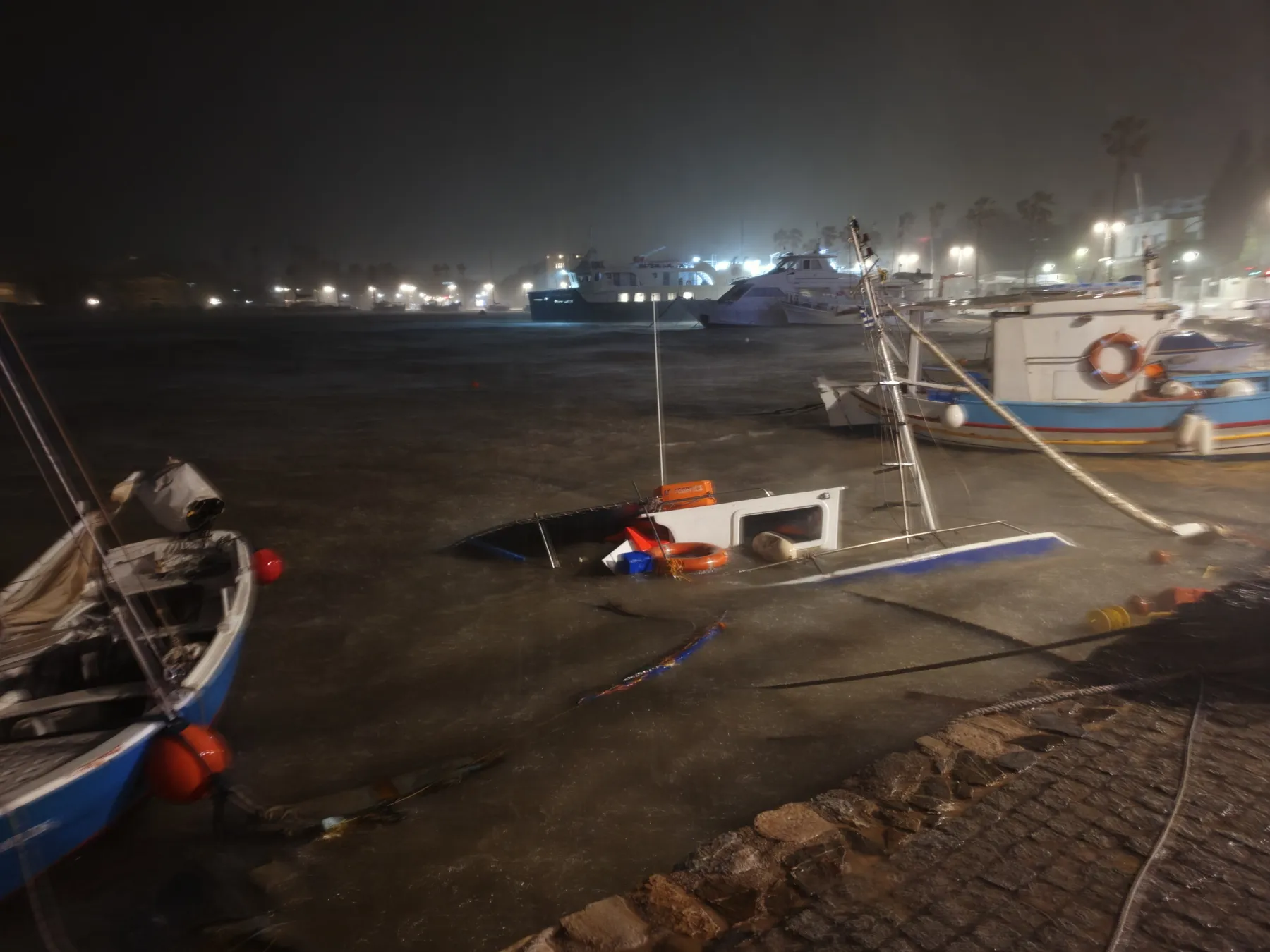 Από την έντονη κακοκαιρία καταγράφηκε και βύθιση καϊκιού στο λιμάνι της Κω.