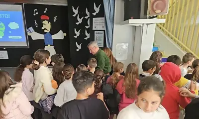 Συνοδευόμενος από την υπεύθυνη χημικό - μηχανικό της ΔΕΥΑΚ κα Ευαγγελία Καζαμία, επισκέφτηκαν τους μαθητές της Δ' Δημοτικού με στόχο να καλλιεργήσουν περιβαλλοντική συνείδηση και να αναδείξουν τη σημασία του νερού στην καθημερινή μας ζωή.