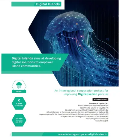Το έργο DIGITAL ISLANDS στοχεύει στη βελτίωση της απόδοσης των περιφερειακών πολιτικών εργαλείων που σχετίζονται με την ψηφιοποίηση. Μέσω διακρατικής συνεργασίας, επιτρέπει στα νησιά να αναπτύξουν και να εφαρμόσουν ψηφιακές λύσεις που ενισχύουν την ανθεκτικότητα, τη βιωσιμότητα και την ελκυστικότητά τους.