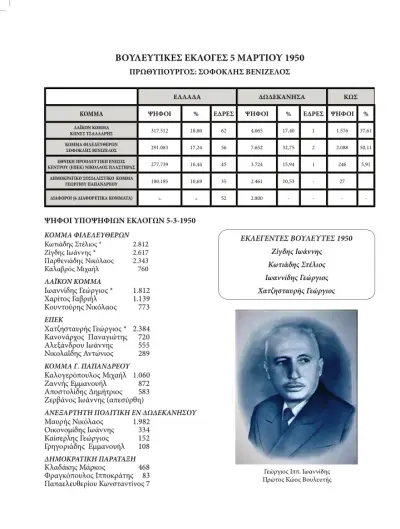 Στη συνέχεια παρουσιάζονται οι βουλευτικές εκλογές, οι ευρωεκλογές, τα δημοψηφίσματα, οι νομαρχιακές και περιφερειακές εκλογές με καταγραφή όλων των υποψηφίων με τους σταυρούς που έλαβαν.