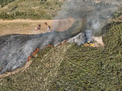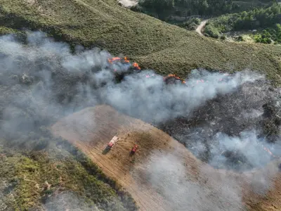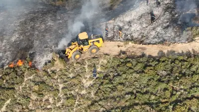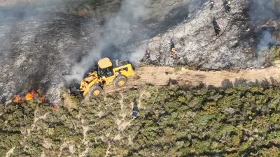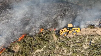 Γύρω στις 18:30 η φωτιά έσβησε. Στο σημείο συνεχίζουν και ρίχνουν νερό ισχυρές Πυροσβεστικές δυνάμεις, ενώ βρίσκεται και το μηχάνημα έργου, η πολιτική προστασία και εθελοντές.
