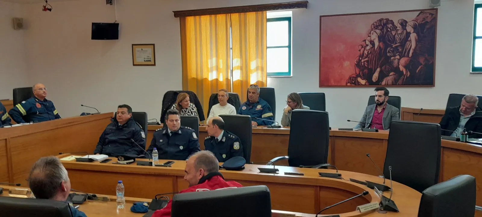 Στη σύσκεψη συμμετείχαν εκπρόσωποι όλων των εμπλεκόμενων υπηρεσιών, μεταξύ των οποίων η Πυροσβεστική Υπηρεσία, η Αστυνομία, το Λιμενικό, οι Ένοπλες Δυνάμεις, εθελοντικές οργανώσεις, καθώς και υπηρεσίες του Δήμου.