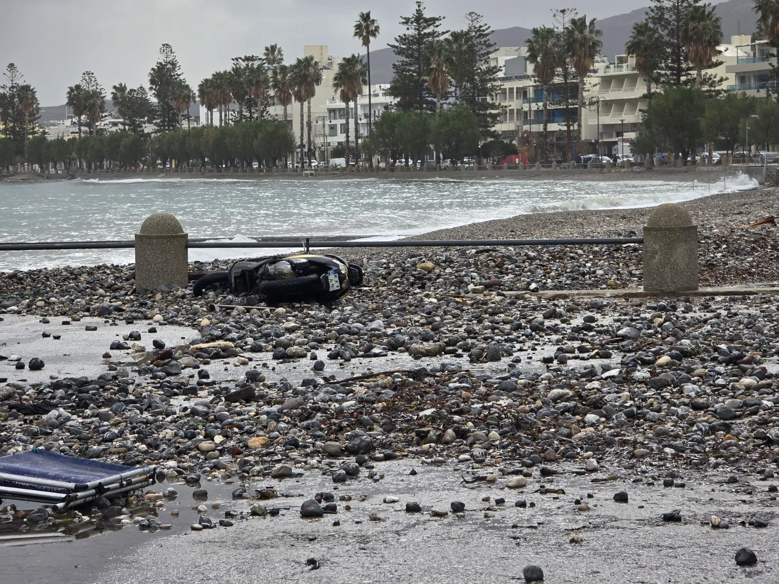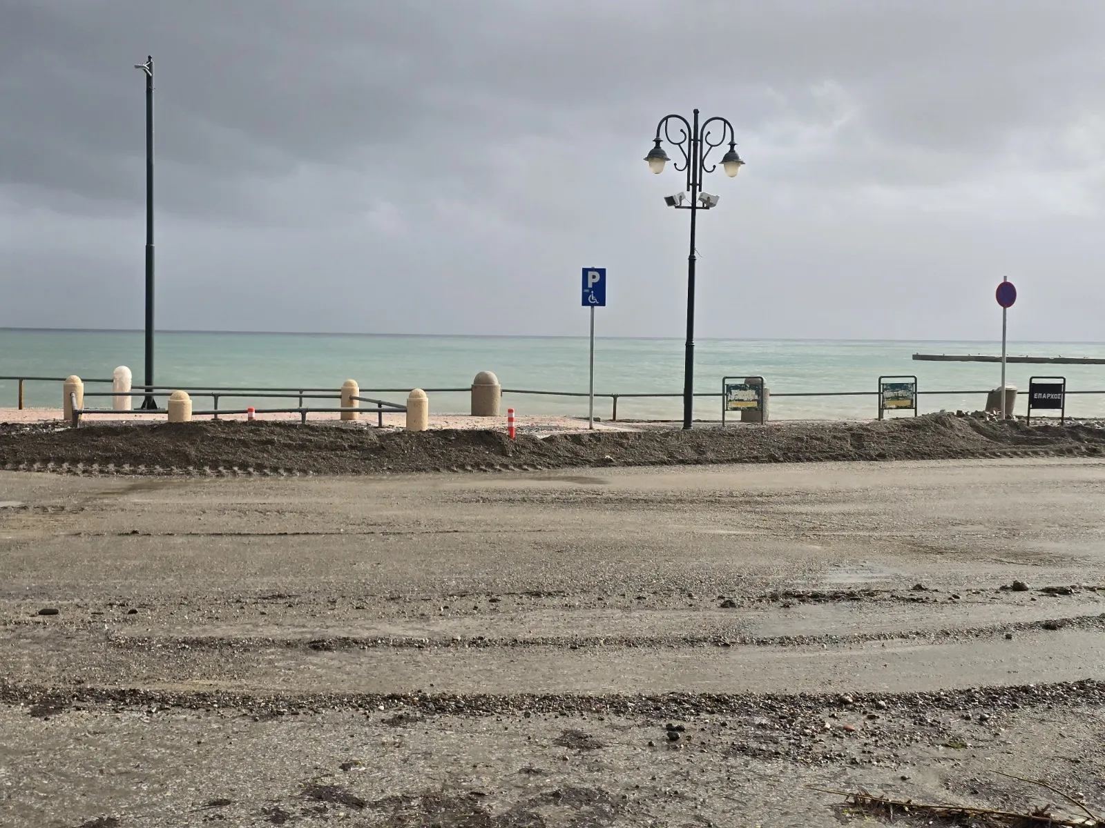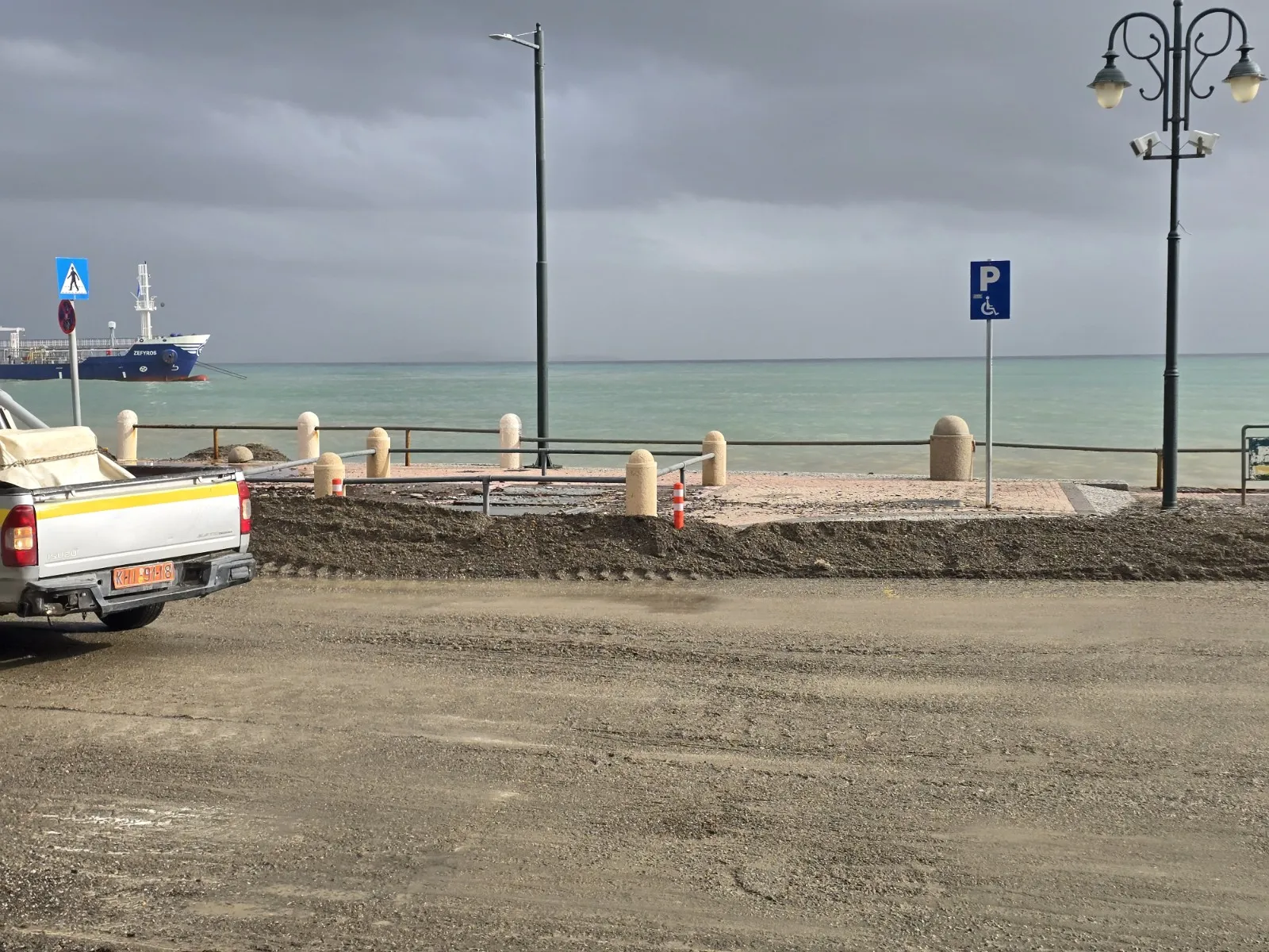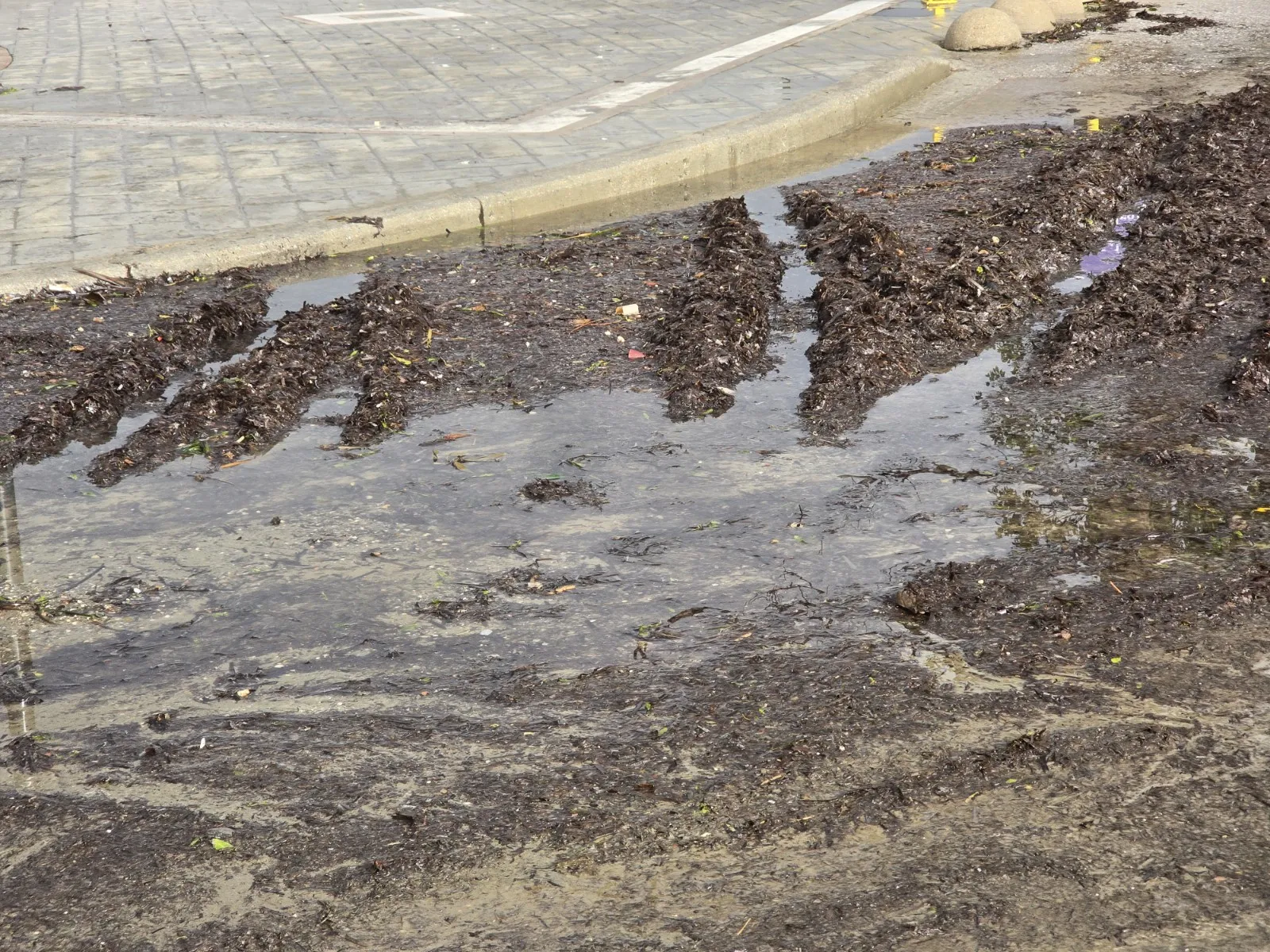 Οι δυνατοί άνεμοι προκάλεσαν εκτεταμένη εισροή θαλασσινού νερού στο οδόστρωμα, με αποτέλεσμα τη μεταφορά μεγάλων ποσοτήτων άμμου, πετρών και φυκιών και τη δημιουργία λιμναζόντων υδάτων σε αρκετά σημεία.
