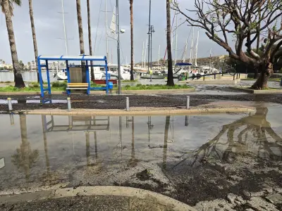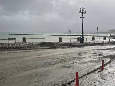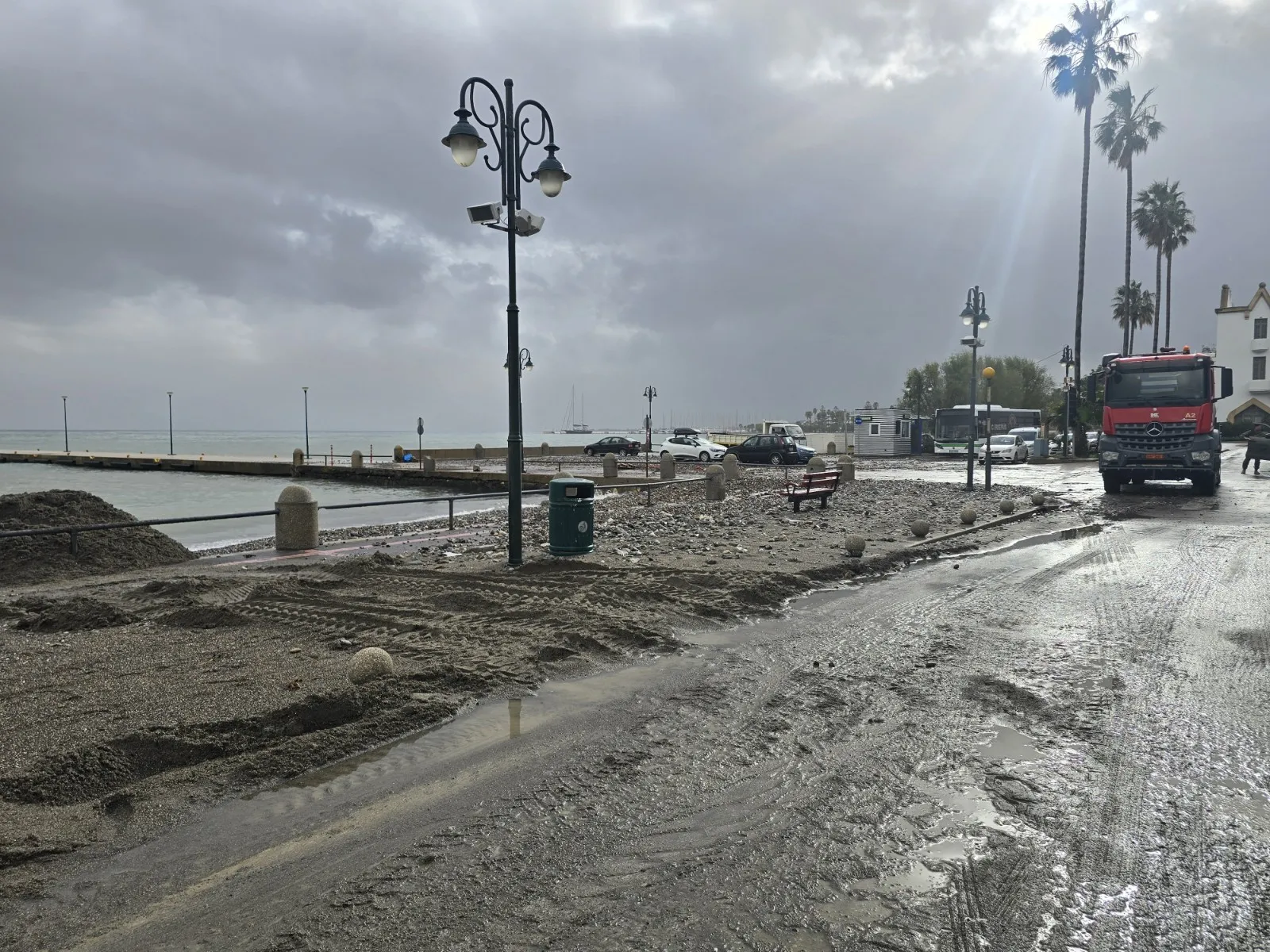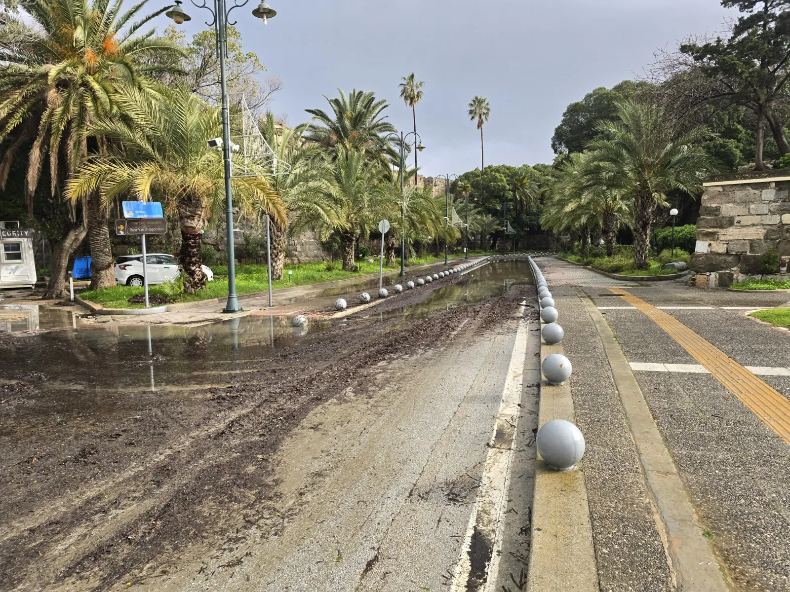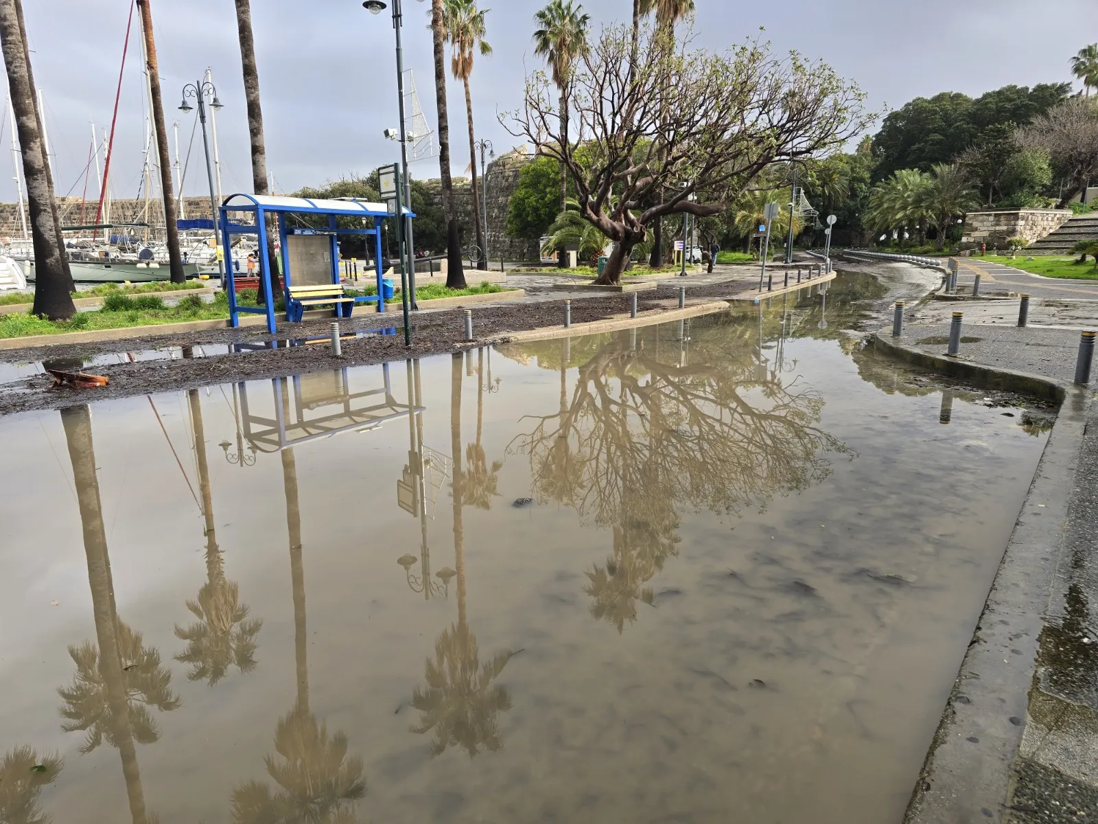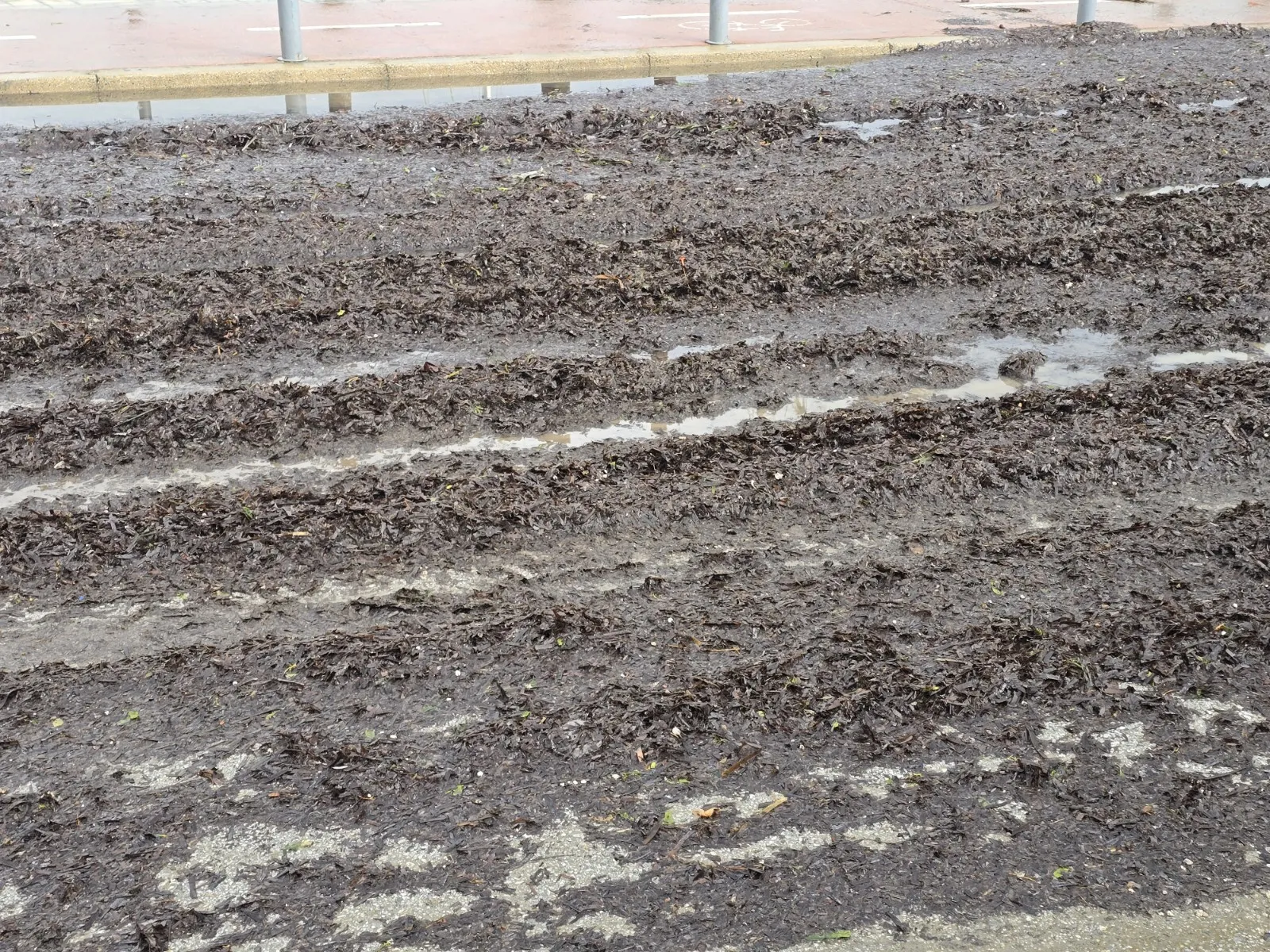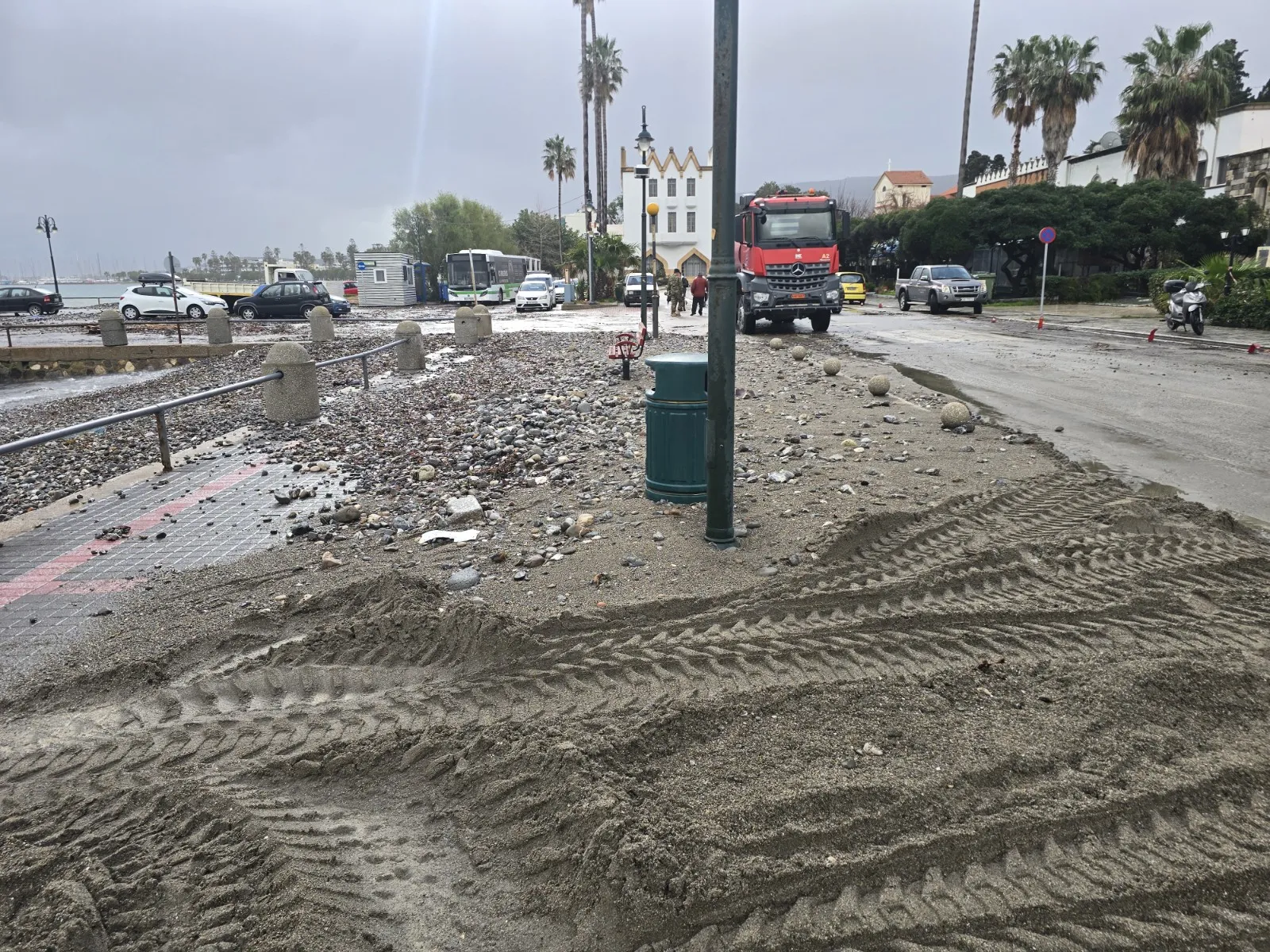 Οι δυνατοί άνεμοι προκάλεσαν εκτεταμένη εισροή θαλασσινού νερού στο οδόστρωμα, με αποτέλεσμα τη μεταφορά μεγάλων ποσοτήτων άμμου, πετρών και φυκιών και τη δημιουργία λιμναζόντων υδάτων σε αρκετά σημεία.