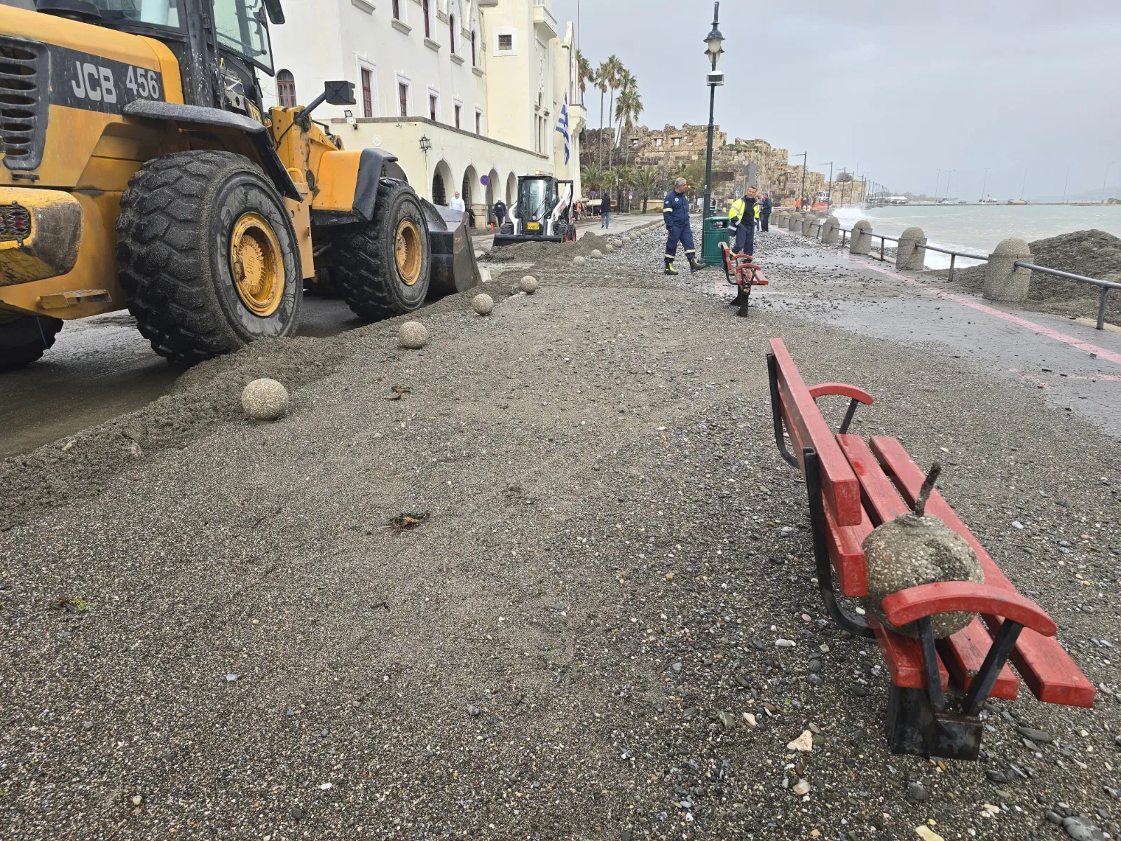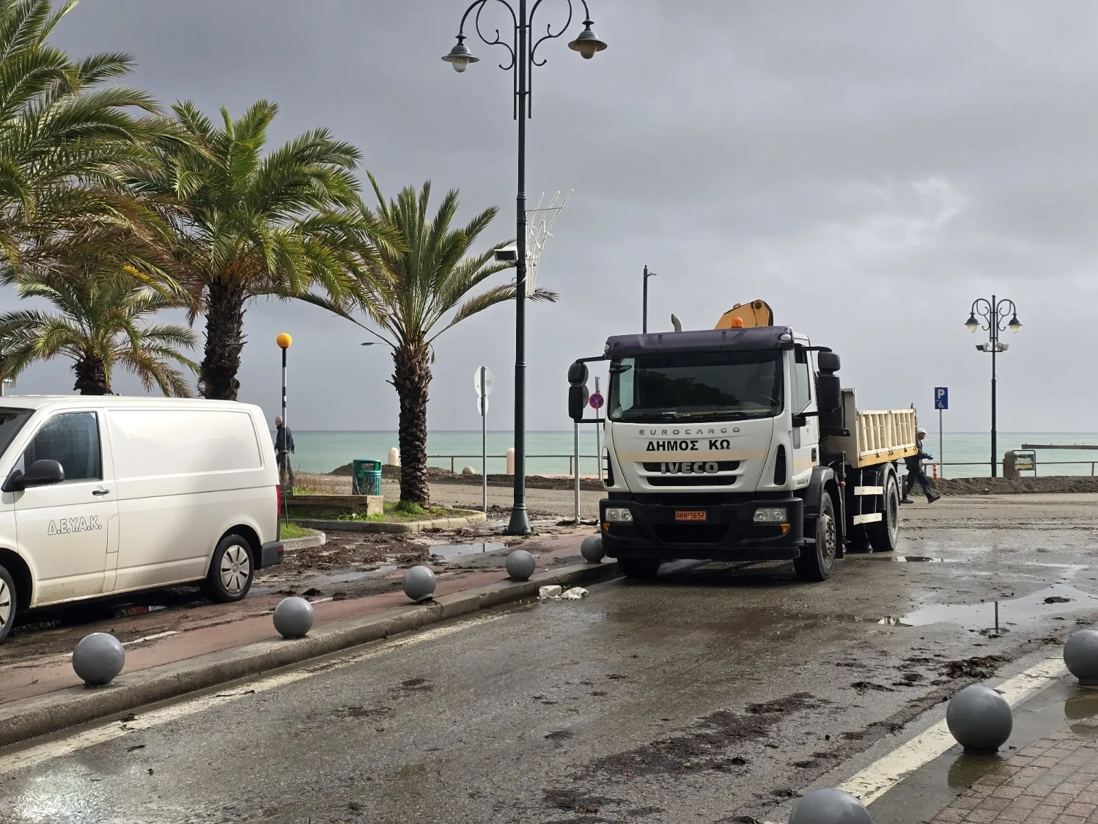 Στο σημείο επιχειρούν συνεργεία του Δήμου Κω με στόχο τον άμεσο καθαρισμό και την αποκατάσταση της κυκλοφορίας.