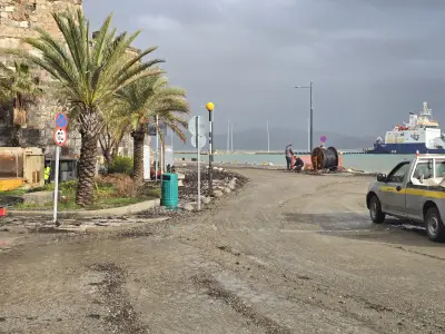 Σε εξέλιξη βρίσκονται από το πρωί της Δευτέρας εργασίες καθαρισμού στον δρόμο του εμπορικού λιμένα Κω, μετά τους ισχυρούς ανέμους που επικράτησαν την Κυριακή.
