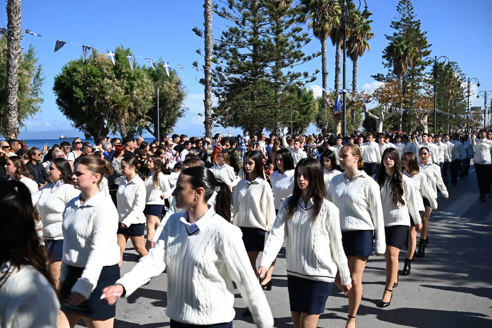 Δείτε παρακάτω φωτογραφίες από την παρέλαση με επικεφαλής τη Φιλαρμονική του Δήμου Κω, των μαθητών της Δευτεροβάθμιας και Πρωτοβάθμιας Εκπαίδευσης και συλλόγων.