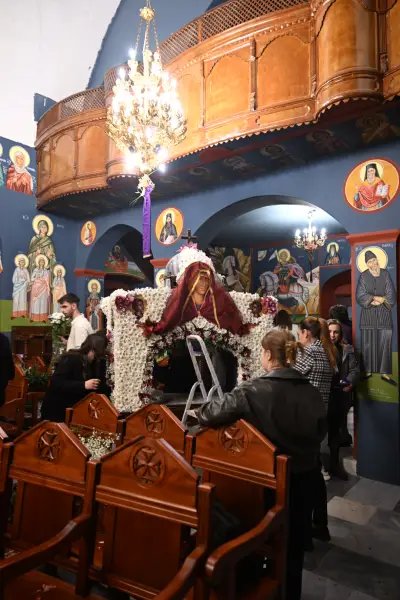 Με φροντίδα και μεράκι, οι πιστοί διακόσμησαν τον Επιτάφιο με άνθη, δίνοντας σε κάθε λεπτομέρεια ξεχωριστή σημασία.