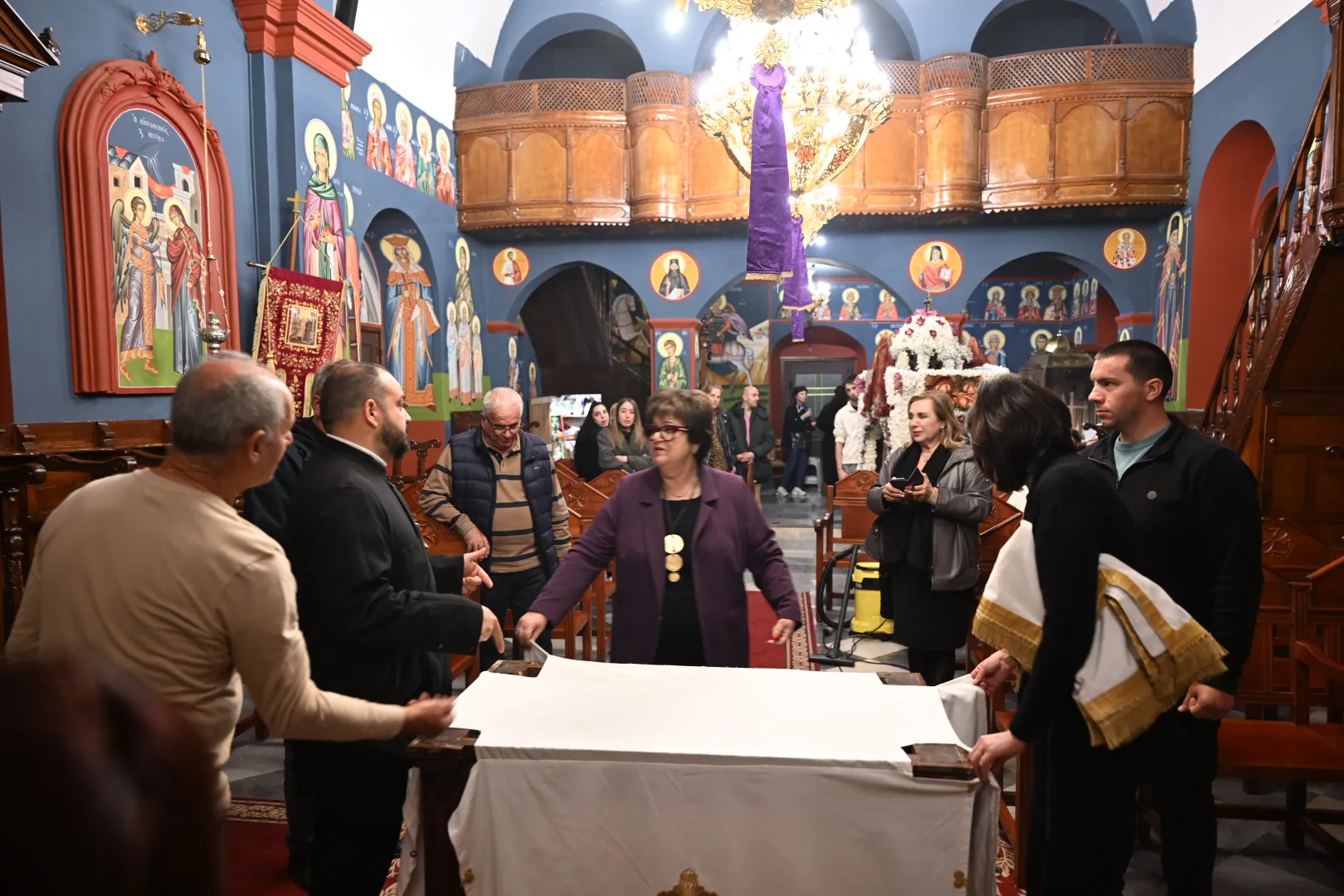 Ιδιαίτερα φορτισμένη ήταν η φετινή στιγμή, καθώς αυτός ήταν ο τελευταίος στολισμός του Επιταφίου για τον πατέρα Ευτύχιο Παπαγεωργίου στην ενορία, αφού στα τέλη Απριλίου αναμένεται να αποχωρήσει. Η συγκίνηση ήταν εμφανής, τόσο στον ίδιο όσο και στους πιστούς που στάθηκαν δίπλα του.