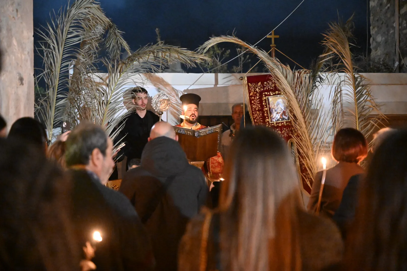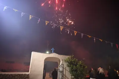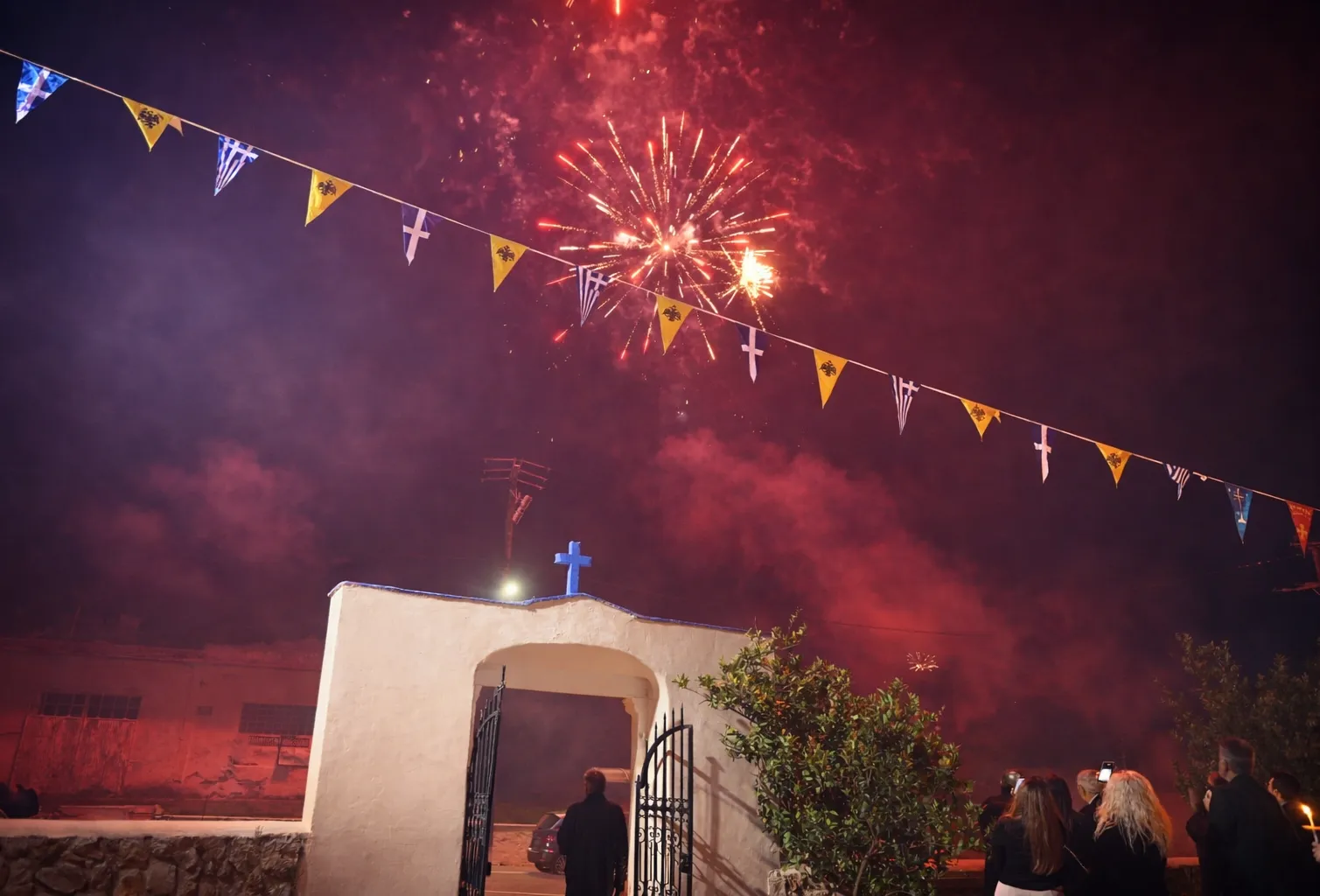 Λίγο πριν τα μεσάνυχτα, οι πιστοί συγκεντρώθηκαν στον προαύλιο χώρο του ναού, κρατώντας τις λαμπάδες τους, περιμένοντας το χαρμόσυνο μήνυμα της Ανάστασης. Με το «Χριστός Ανέστη», ο ουρανός φωτίστηκε από πυροτεχνήματα, ενώ οι καμπάνες ήχησαν πανηγυρικά.