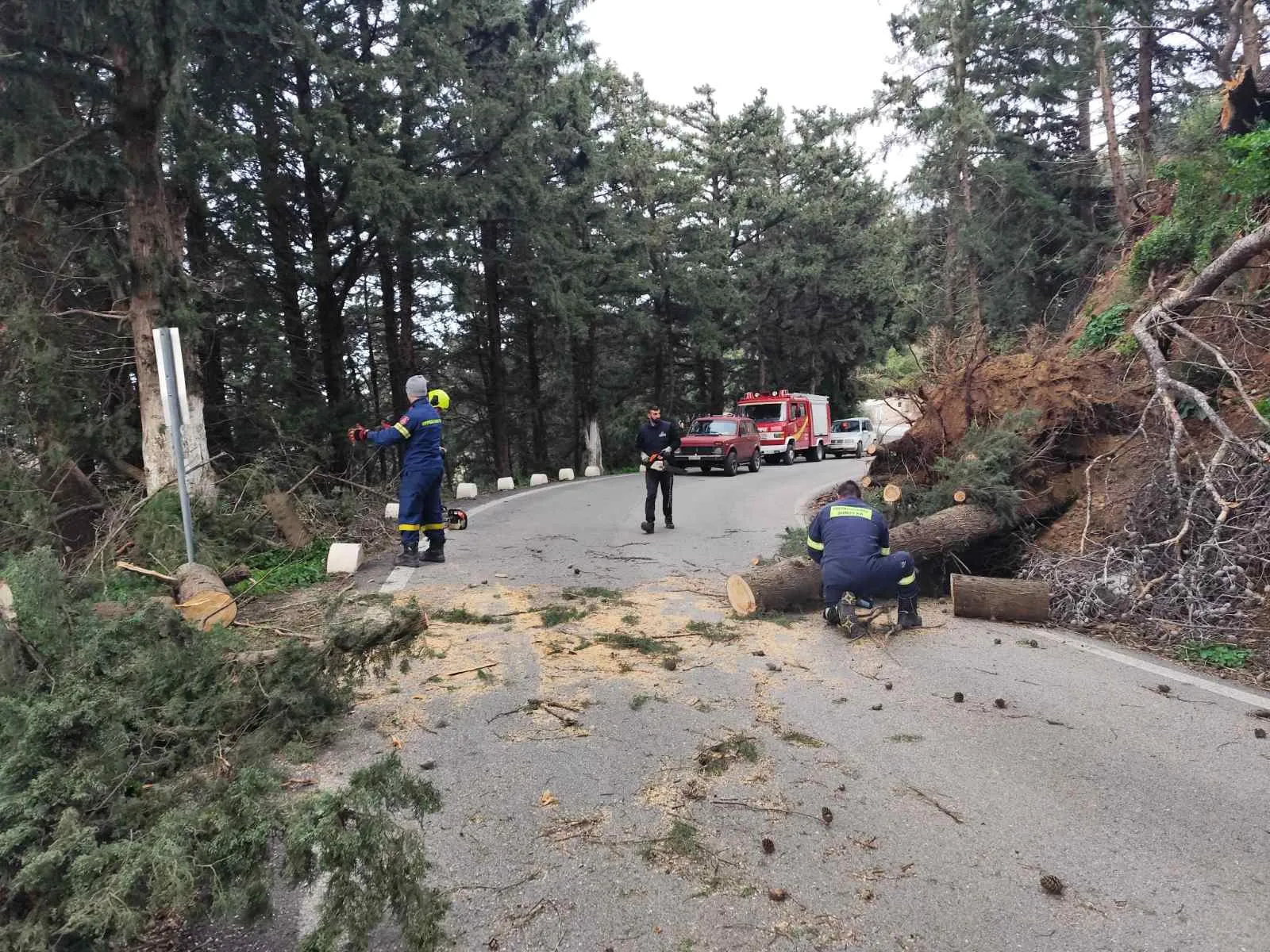 Στο σημείο βρίσκεται ο πρόεδρος της κοινότητας Σεβαστιανός Παρβέρης, η πολιτική προστασία του Δήμου Κω και η Πυροσβεστική Υπηρεσία Κω για την άμεση απομάκρυνση του δέντρου και την αποκατάσταση της κυκλοφορίας.