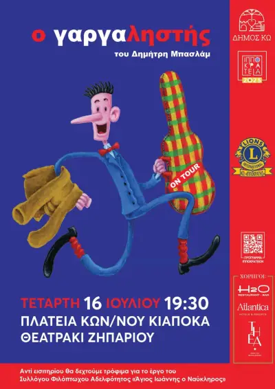 ΠΑΙΔΙΚΗ ΘΕΑΤΡΙΚΗ ΠΑΡΑΣΤΑΣΗ «Ο ΓΑΡΓΑΛΗΣΤΗΣ» του ΔΗΜΗΤΡΗ ΜΠΑΣΛΑΜ, σε συνεργασία με τη ΛΕΣΧΗ LIONS ΚΩ «Ο ΙΠΠΟΚΡΑΤΗΣ»